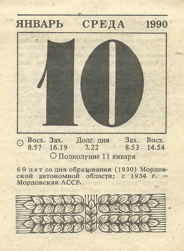 60 лет со дня образования (1930) Мордовской автономной области; с 1934 г. — Мордовская АССР.