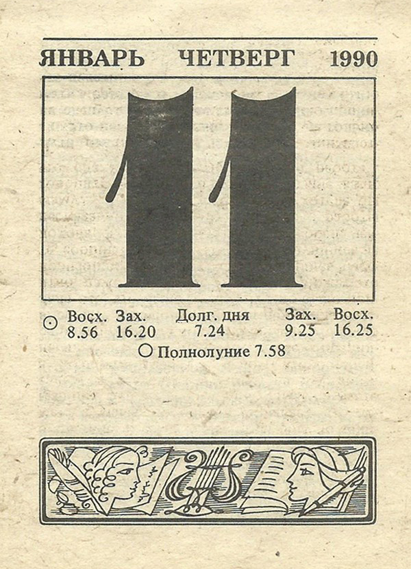 Отрывной календарь для женщн за 1990-й год