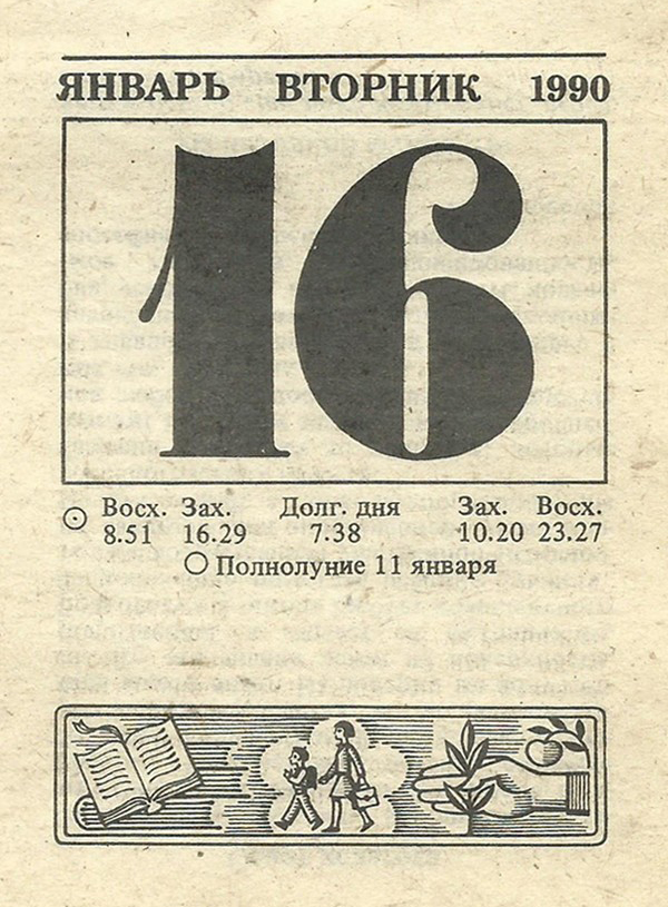 Отрывной календарь для женщн за 1990-й год