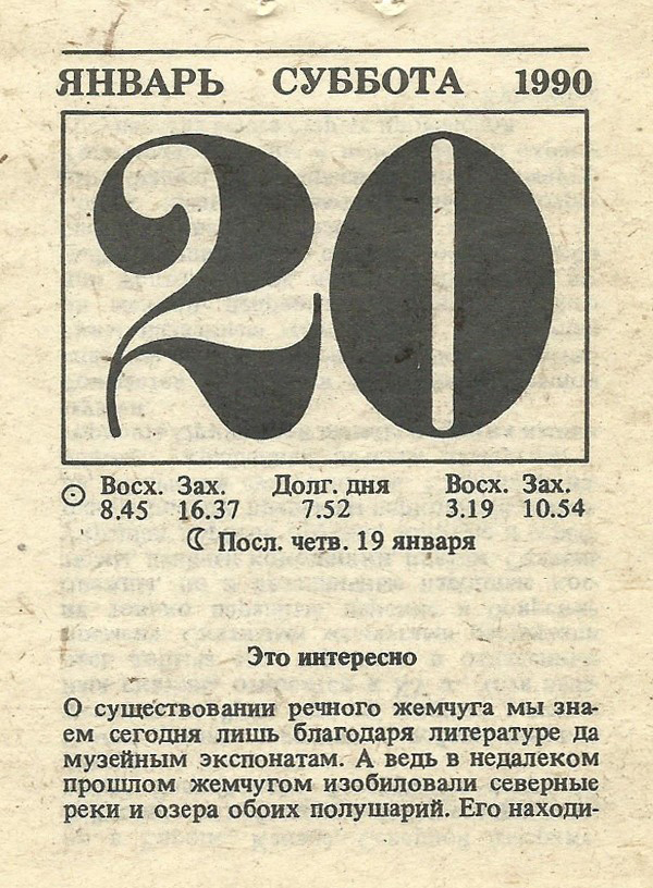 Отрывной календарь для женщн за 1990-й год