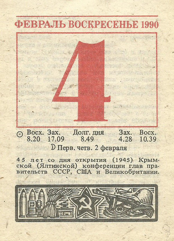Отрывной календарь для женщн за 1990-й год