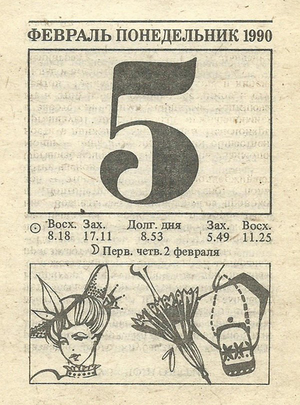 Отрывной календарь для женщн за 1990-й год