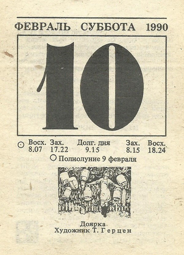 Отрывной календарь для женщн за 1990-й год