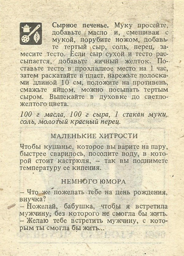 Чтобы кушанье, которое вы варите на пару, быстрее сварилось, посолите воду, в которой стоит кастрюля, — так вы поднимете температуру ее кипения.