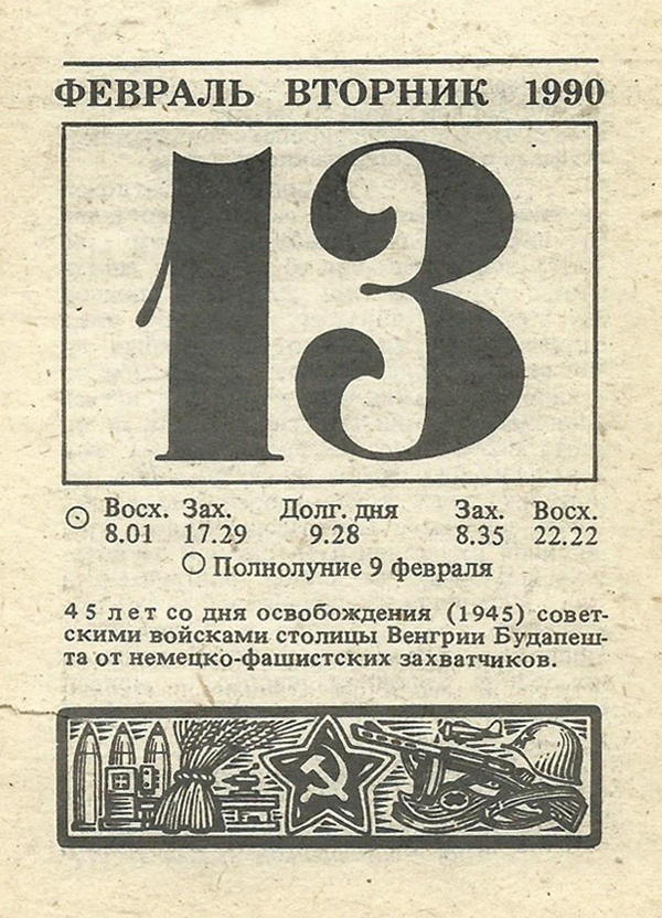 45 лет со дня освобождения (1945) советскими войсками столицы Венгрии Будапешта от немецко-фашистских захватчиков.