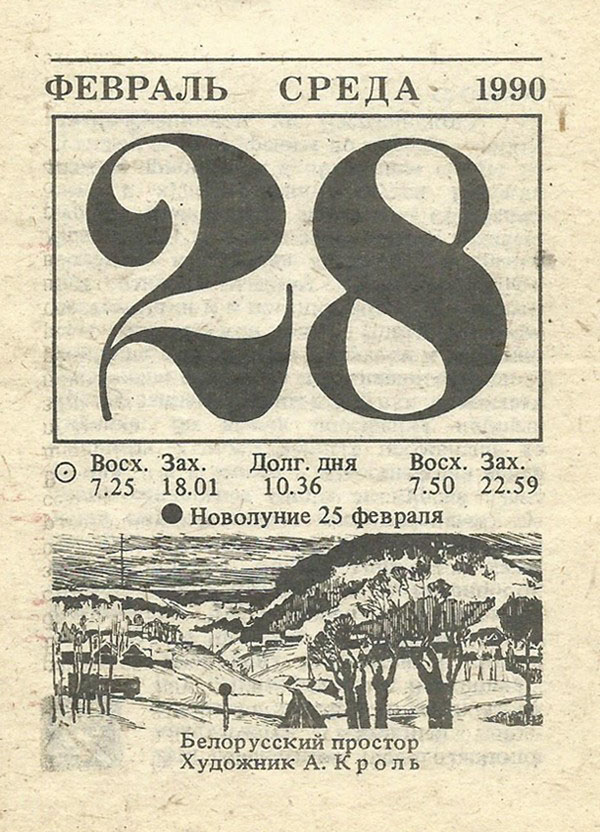 Отрывной календарь для женщн за 1990-й год