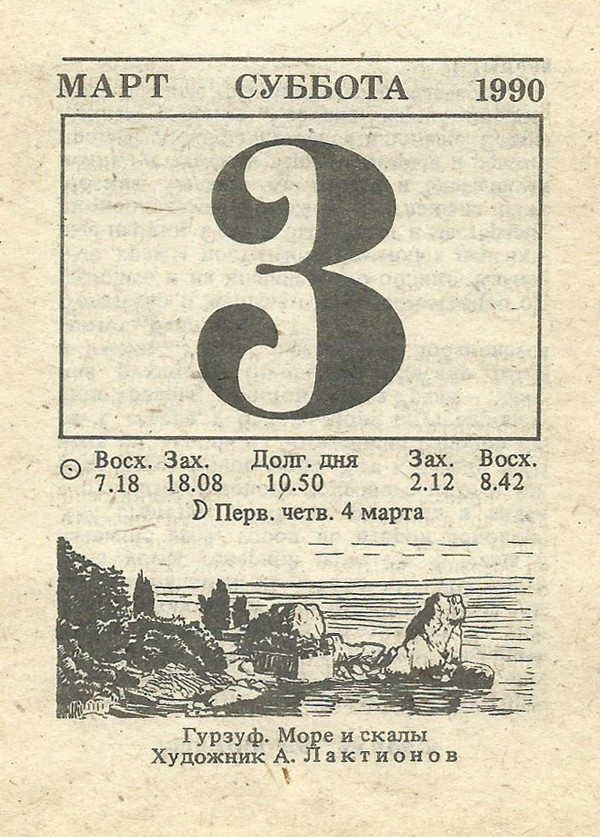 Отрывной календарь для женщн за 1990-й год