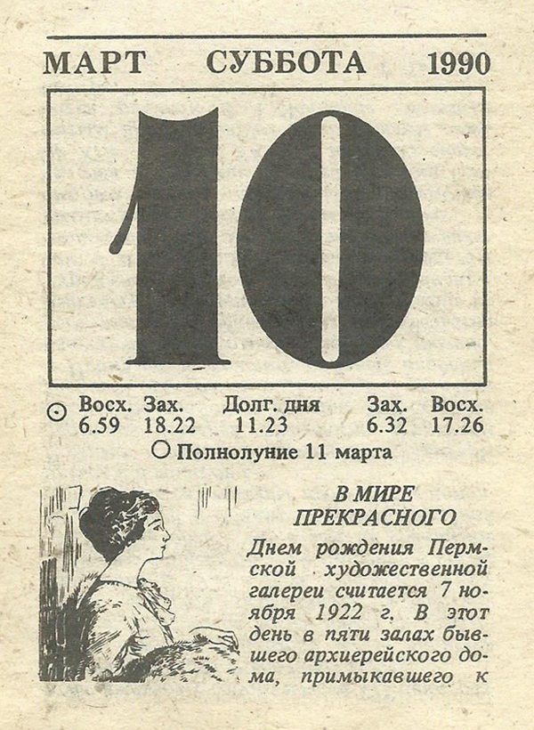 Отрывной календарь для женщн за 1990-й год