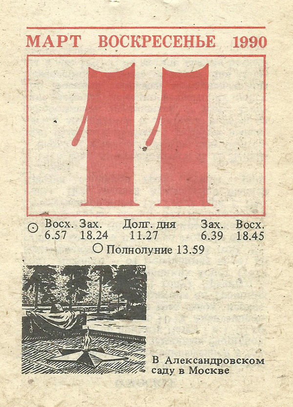 Отрывной календарь для женщн за 1990-й год