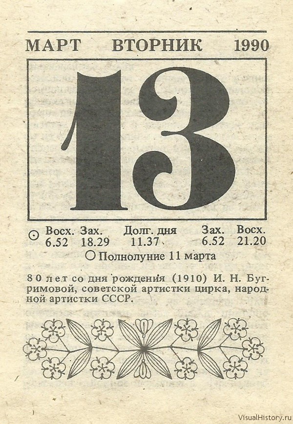Отрывной календарь для женщн за 1990-й год