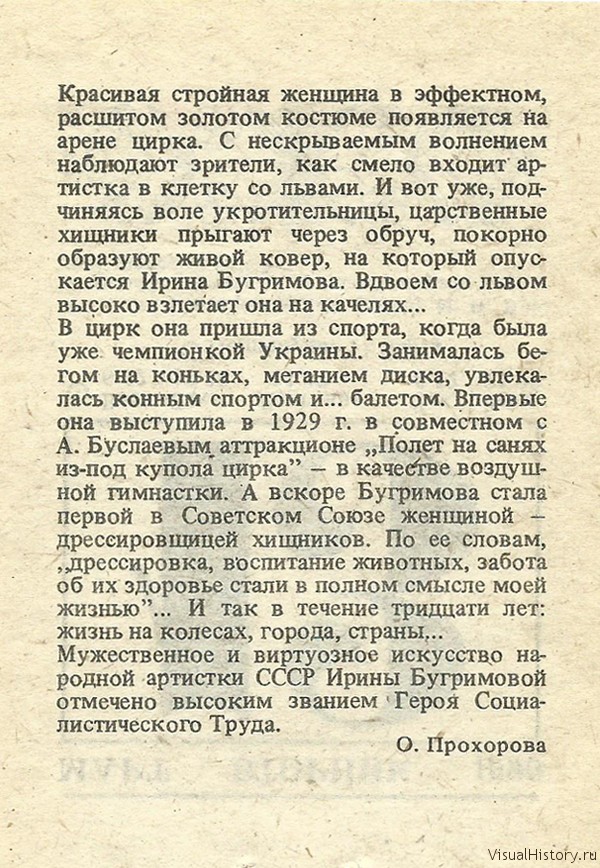 80 лет со дня рождения (1910) И. Н. Бугримовой, советской артистки цирка, народной артистки СССР.