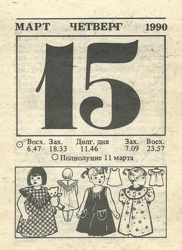 Отрывной календарь для женщн за 1990-й год
