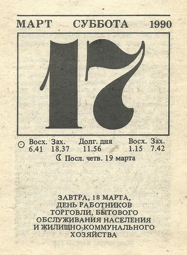 Отрывной календарь для женщн за 1990-й год