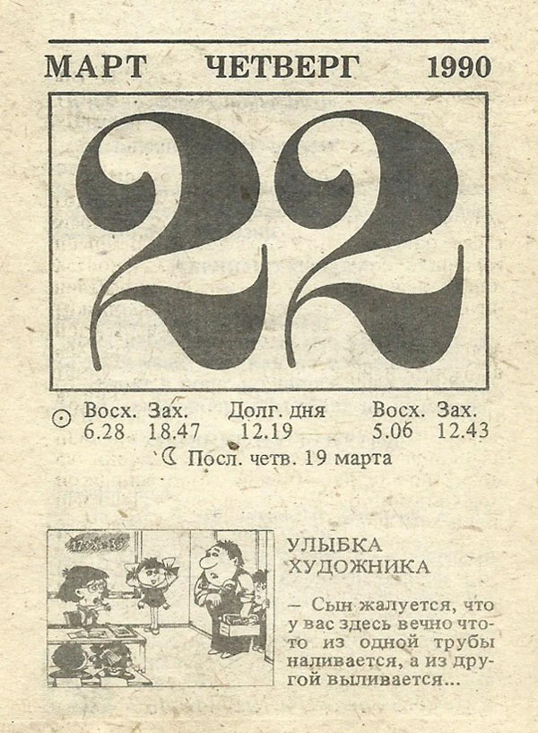 Отрывной календарь для женщн за 1990-й год
