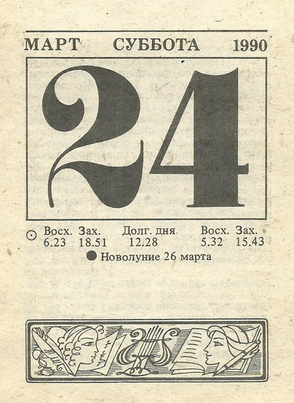 Отрывной календарь для женщн за 1990-й год