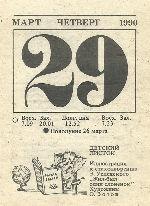 Отрывной календарь для женщн за 1990-й год