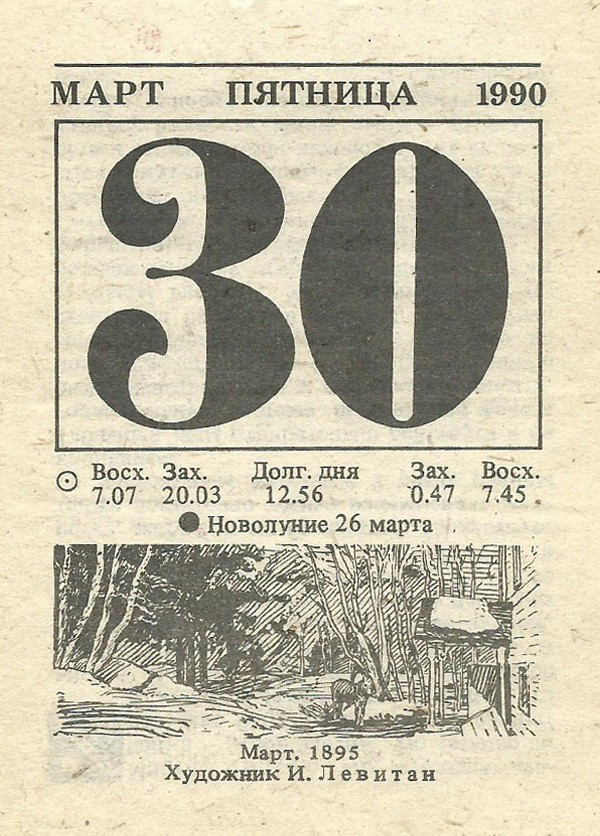 Отрывной календарь для женщн за 1990-й год