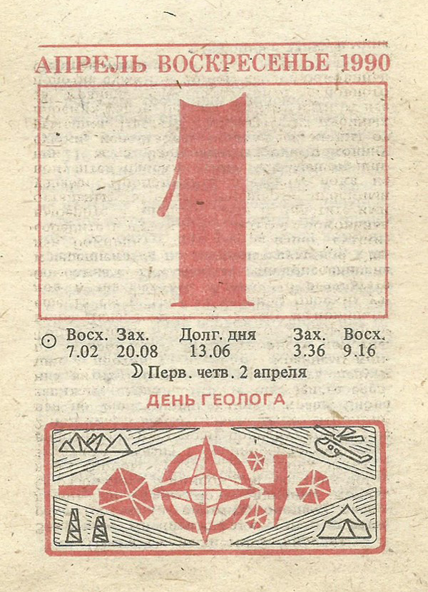 Отрывной календарь для женщн за 1990-й год