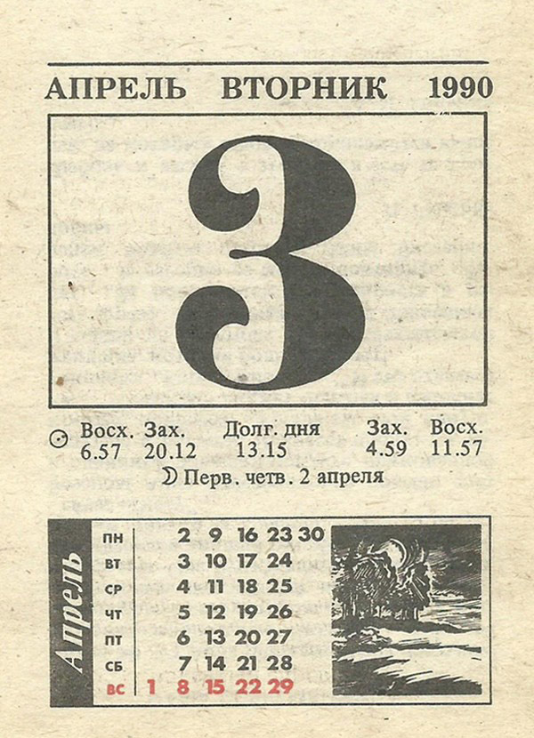 Отрывной календарь для женщн за 1990-й год