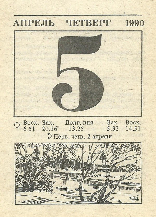 Отрывной календарь для женщн за 1990-й год
