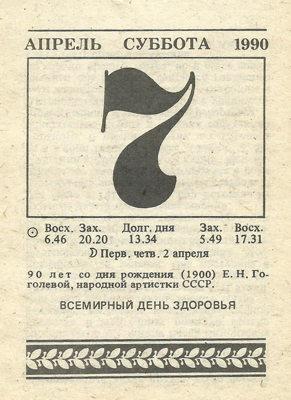 Отрывной календарь для женщн за 1990-й год