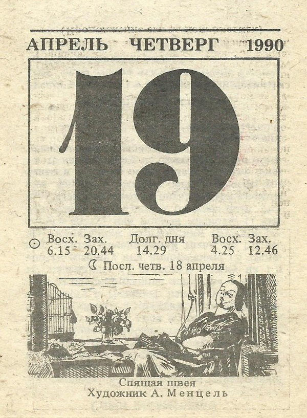 Отрывной календарь для женщн за 1990-й год