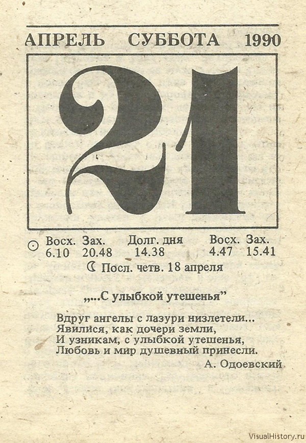 Отрывной календарь для женщн за 1990-й год