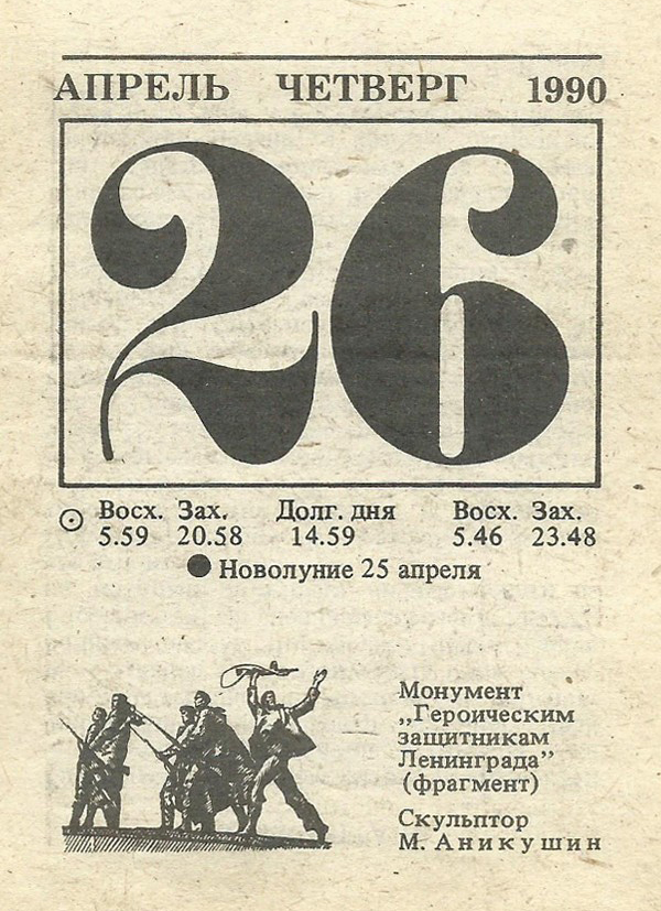 Отрывной календарь для женщн за 1990-й год