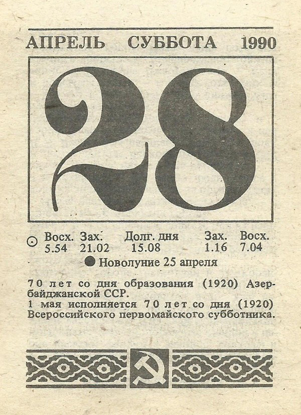 Отрывной календарь для женщн за 1990-й год