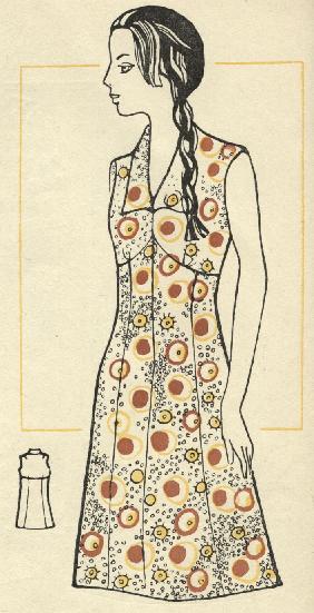 из шёлковой ткани, с подрезом выше линии талии. Лиф мягкой формы.