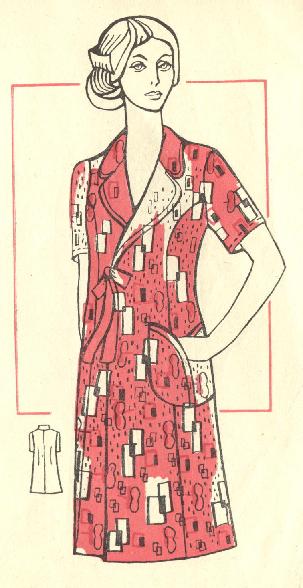 с отложным воротником и отворотамию Завязывается на полупояс.